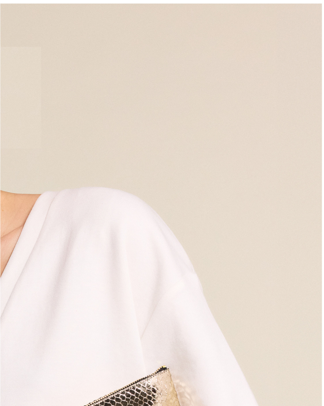 - Être chic, cool et pratique au bureau avec un sac grand format en cuir, motif zèbre. A l’intérieur la pochette beauté champagne brillante assorti de son porte carte noir.